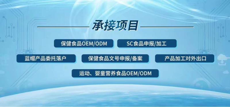 公司秉承“顾客至上,锐意进取”的经营理念,坚持“客户第一”的原则为广大客户提供优质的服务。(各种规格包装的保健食品,固体饮料,压片糖果,凝胶糖果,胶原蛋白粉剂 OEM/ODM贴牌代工生产)按客户要求代工贴牌生产 贴牌代工生产产品